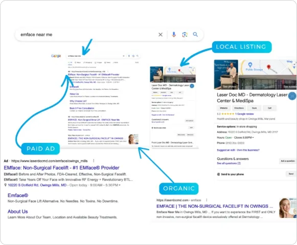 Paid ads are targeted at the people most likely to convert. TV, print, or billboard advertising targets a local audience. Online ads go further. They are directed to local consumers already showing interest in services your business offers, like Emsculpt, EMface, Emtone, Emsella, and Cellutone.